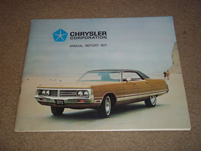 Title (ebay affiliate link): 1971 Chrysler Corporation Annual Report Charger Imperial Mopar Alpine Monaco