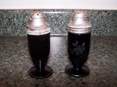 Title (ebay affiliate link): HAZEL ATLAS GLASS OVIDE BLACK SALT PEPPER SHAKERS ETCH