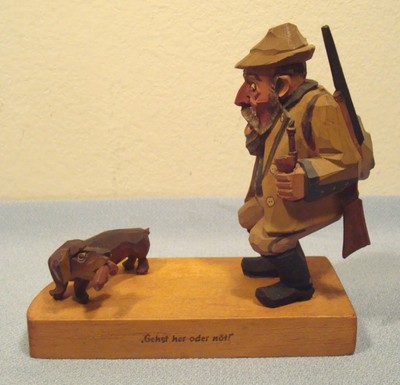 Title (ebay affiliate link): GERMAN HUNTER & DACHSHUND Man & Dog Hand Carved Pretzl Wood Figurine Sculpture