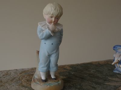 Bisque Hand Painted Toothpick Holder Figural Boy with Flower
