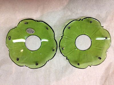 VINTAGE PAIR OF CZECH CRYSTAL BOBECHE Marked IN ANTIQUE GREEN