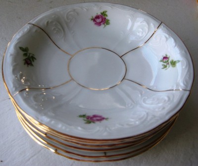Title (ebay affiliate link): 1940s Antique Bernadotte Czecoslovakia fine porcelain 7 saucers roses gold trim