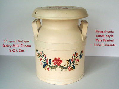 Title (ebay affiliate link): RARE Old 2 Gal Heavy STEEL Milk CREAM Can TOLE Painted PENNSYLVANIA Dutch STYLE