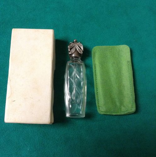 OBERON RUE SCRIBE - PARIS - PERFUME BOTTLE - ETCHED GLASS, SILVER CROWN TOP/box