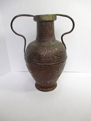 UNUSUAL Antique Early Copper Vase w/ Mans Face in Design ASIAN?