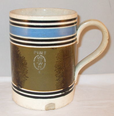 Title (ebay affiliate link): Antique Mocha Ware Seaweed Pattern Pint Tankard /Tree Leaf Mug Late 1700s-1800s