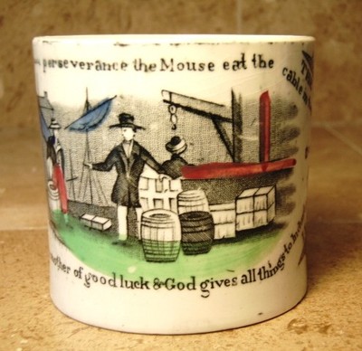 Antique Pearlware Transferware Childs Mug Franklins Poor Richard Maxims