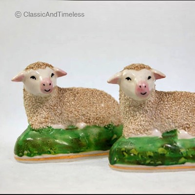 2 ANTIQUE ENGLISH STAFFORDSHIRE PORCELAIN SHEEP FIGURINES
