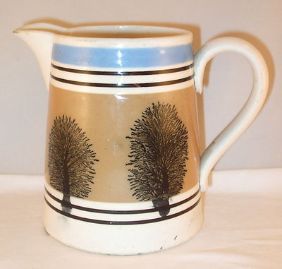 Title (ebay affiliate link): Antique Mocha Ware Seaweed Pattern Pint Pitcher /Tree Leaf Late 1700s-1800s