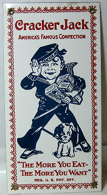 Title (ebay affiliate link): Vintage Advertising Two Sided Porcelain Enamel Sign Cracker Jack Sign