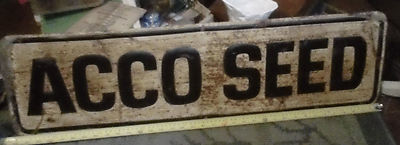 Title (ebay affiliate link): VINTAGE ANTIQUE 1900 ACCO SEED TIN SIGN BELMOND IOWA 35" LONG