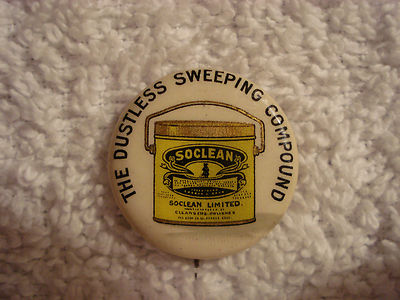 CELLUILOID ADVERTISING PINBACK BUTTON THE DUSTLESS SWEEPING COMPOUND SOCLEAN