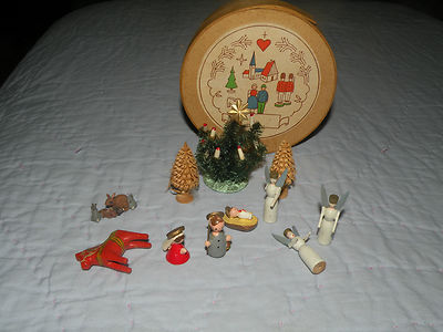 Title (ebay affiliate link): Vintage MIniature Wooden Wood German Nativity In Box W/ Extras Angels Jesus CUTE