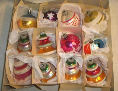 Title (ebay affiliate link): 12 1940-50's GLASS CHRISTMAS ORNAMENTS/6 TREES/6 BALLS