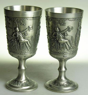 Pair, German, Pewter, Zinn, small Goblets, Chalice, Freiling, Rein-Zinn.