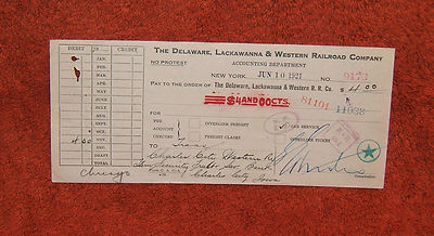 Title (ebay affiliate link): Delaware Lackawanna Western Railroad Co. Check to Charles City Western 1921