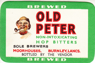 VINTAGE ORIGINAL MOORHOUSES BURNLEY OLD PETER HOP BITTERS DRINK LABEL