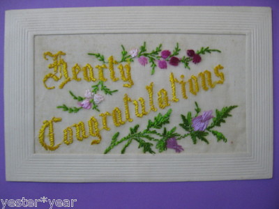 WW1 Silk Postcard ~ HEARTY CONGRATULATIONS