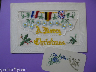 Title (ebay affiliate link): WW1 Silk Postcard ~ A MERRY CHRISTMAS ~ To Eilleen from Leonard ~ EXC