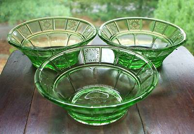Title (ebay affiliate link): JEANNETTE DORIC GREEN DEPRESSION FRUIT DESSERT BOWLS