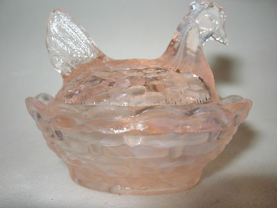 Title (ebay affiliate link): pink and milk slag glass salt celt hen chicken on nest basket dish rooster white