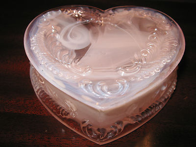 Title (ebay affiliate link): Pink & milk slag glass heart pattern powder jewelry box dresser tray holder ring