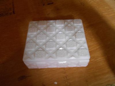 Title (ebay affiliate link): VINTAGE Westmoreland Milk Glass Old Quilt Square Covered Box Candy Nut Dish