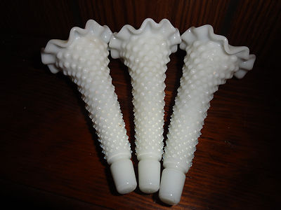 Title (ebay affiliate link): THREE Vintage Fenton Epergne Horns White Milk Glass Hobnail Vase Replacements