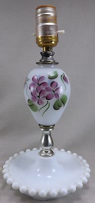 Title (ebay affiliate link): VINTAGE WHITE MILK-GLASS HOBNAIL ELECTRIC TABLE BEDROOM LAMP HAND PAINTED