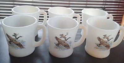 Vintage Set of 6 Canada Goose Fire King Fireking Milk Glass Coffee Cups Mugs