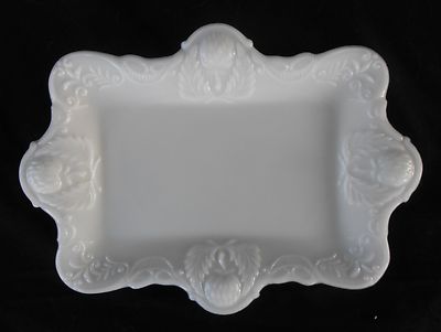 EAPG Glass * White Milk Glass * 10-1/4" PIN TRAY Boudoir Dresser Vanity * Floral