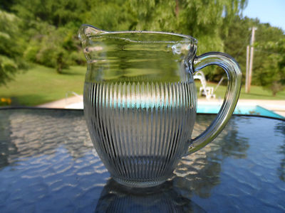 Title (ebay affiliate link): 5 " CRYSTAL FINE RIB PATTERN MILK PITCHER HAZEL ATLAS DEPRESSION GLASS 1930'S