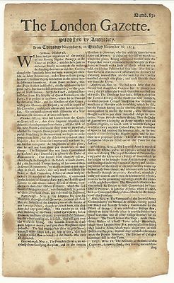 Title (ebay affiliate link): Orig. 1673 English newspaper THE LONDON GAZETTE Nov. 6-10, 1673