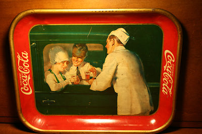 Title (ebay affiliate link): Original Antique Advertising Sign Coca Cola Coke Tin Serving Tray 1927 Car Hop