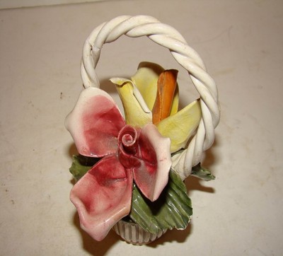 Title (ebay affiliate link): VINTAGE 1960-70s NEAR MINT CAPODIMONTE ROSES DAINTY BASKET CROWN OVER "N"