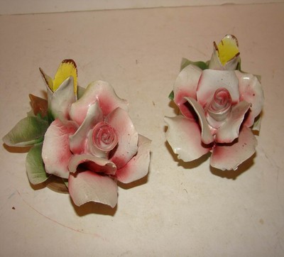 VINTAGE 1960-70s CAPODIMONTE FLORAL PAIR CANDLE HOLDERS Marked CROWN OVER "N" (B