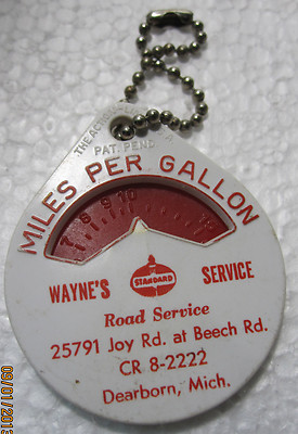 Vintage Standard Oil Miles Used Per Gallon Gauge Keychain - Dearborn MI
