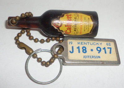 Title (ebay affiliate link): Vintage 1962 Kentucky Mini License Plate Keychain Tag w/ Bottle of Whiskey Fob