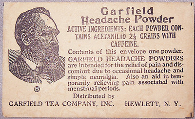 Title (ebay affiliate link): -NOS- 1800's President James A Garfield- Medical Caffeine Headache Powder Packet