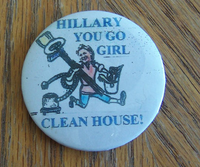 Title (ebay affiliate link): Hillary Political Pin Button Pinback Hillary You Go Girl Clean House