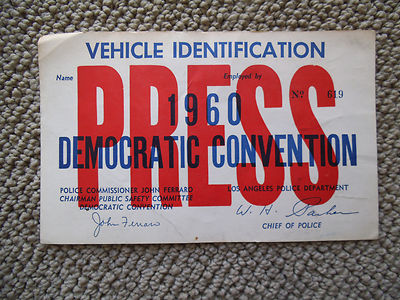 Title (ebay affiliate link): Democratic National Convention 1960 Press Vehicle Identification Pass