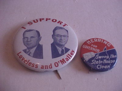 Vintage Loveless/O'Malley Jugate & Herring for Governor from Iowa Pinbacks