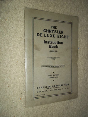 Title (ebay affiliate link): 1935 Chrysler "De Luxe Eight" Car Instruction Book Owner's Manual First-Edition