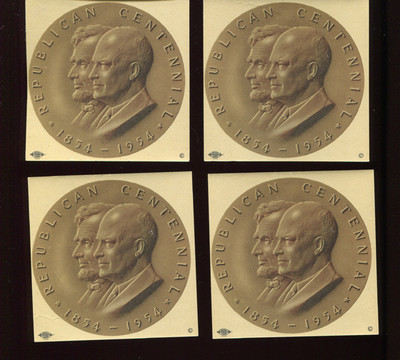 REPUBLICAN CENTENNIAL MEDAL Four 1954 Window Stickers LINCOLN Eisenhower