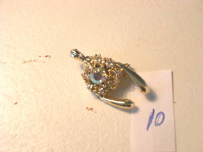 ANTIQUE VINTAGE RHINESTONE PIN BROOCH GOLD COLOR