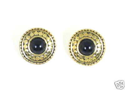 Title (ebay affiliate link): ANTIQUE-GOLD GP ORNATE BUTTON ROUND BLACK BEAD EARRINGS