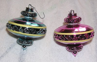 2 Vintage Plastic Filigree Ornaments Pink Blue