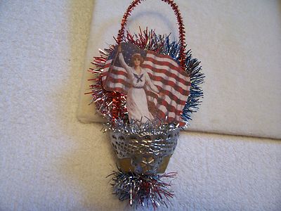 VINTAGE LOOK Christmas ornament,scrap,tinsel,cardboard,paper,wire,handcrafted