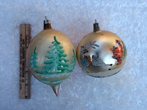 Title (ebay affiliate link): 2Vtg Jumbo Poland Glass Christmas Ornament Santa Sleigh Girl w/Tree Mica