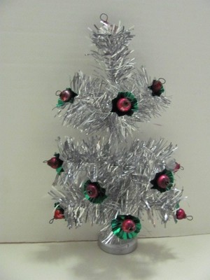 VINTAGE UNIQUE 8" ALUMINUM SMALL HALF WALL TREE GLASS MERCURY BEADS JAPAN